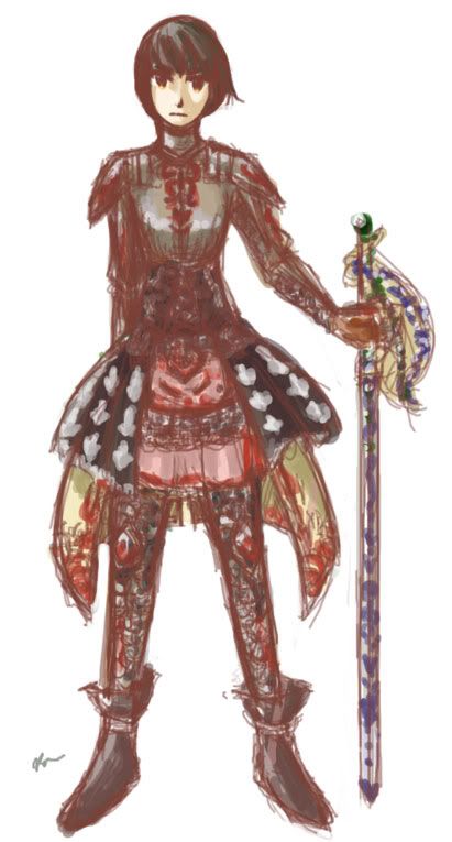 So there was this main character I never named or designed despite working on her story. And here she is. I did some armor research a while back just for this, although that's not to say the armor here is efficient for battle. It just looks more efficient. I wonder how she can carry all that weight though...