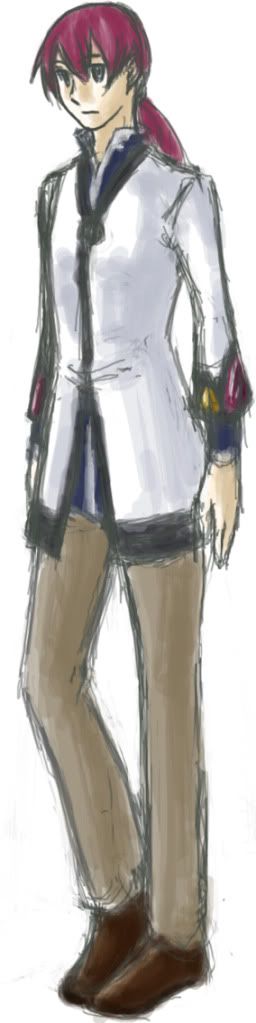 But back to Knight. He still works with computers in CF, but he isn't so spunky and show-offy. He's more closed up in CF since many characters he was close to in UB (and CF, too, technically) are dead. XD;; And a lot of the drama concerning him in UB was carried over to CF since a lot of UB was merged into CF, so, yeah, he's a drama llama. :|b There's actually a story behind that coat that's too small for him. *ahem* Drama llama. *ahem* While he IS slightly older in CF than in UB, I kinda made him too...old here. Aack, my grasp on age is slipping. I made his name up in fourth grade just 'cause I thought it sounded cool, but when I was flipping through some name book, apparently it's a legitimate name! WHAAT?! XD;; Boy, was I shocked! Too bad Whistle and Crown aren't legitimate names though. ^^; Ahh, my naming-guys-after-objects phase.