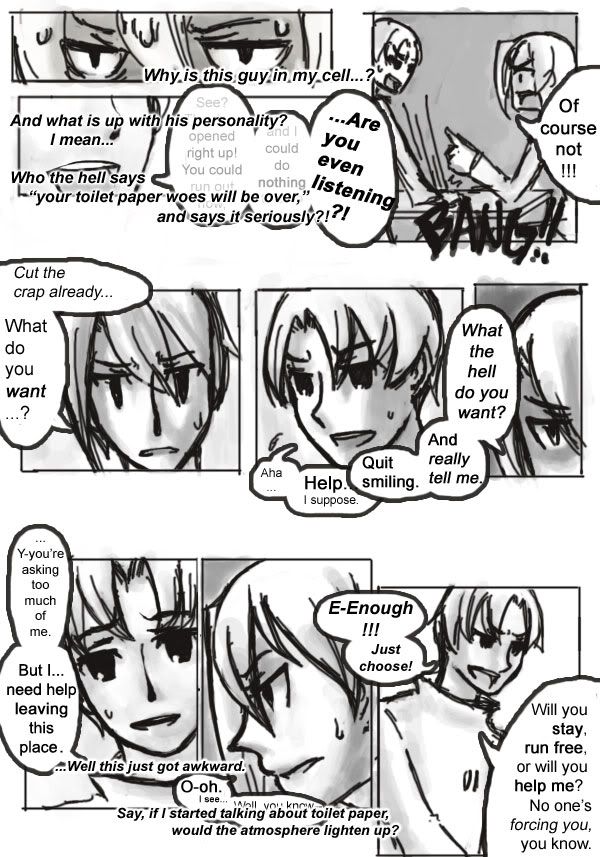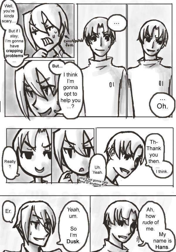 There's a severe lack of toilet paper today guys. : | Next page will be SUDDEN TRANSITION or PROLONGED AWKWARDNESS. Whichever I feel like. I'm still gonna try to get CF started soon, but I just don't feel serious enough for it...so I'll vent my non-seriousness and poke fun at CF here and hope CF turns out well when I do get it up!