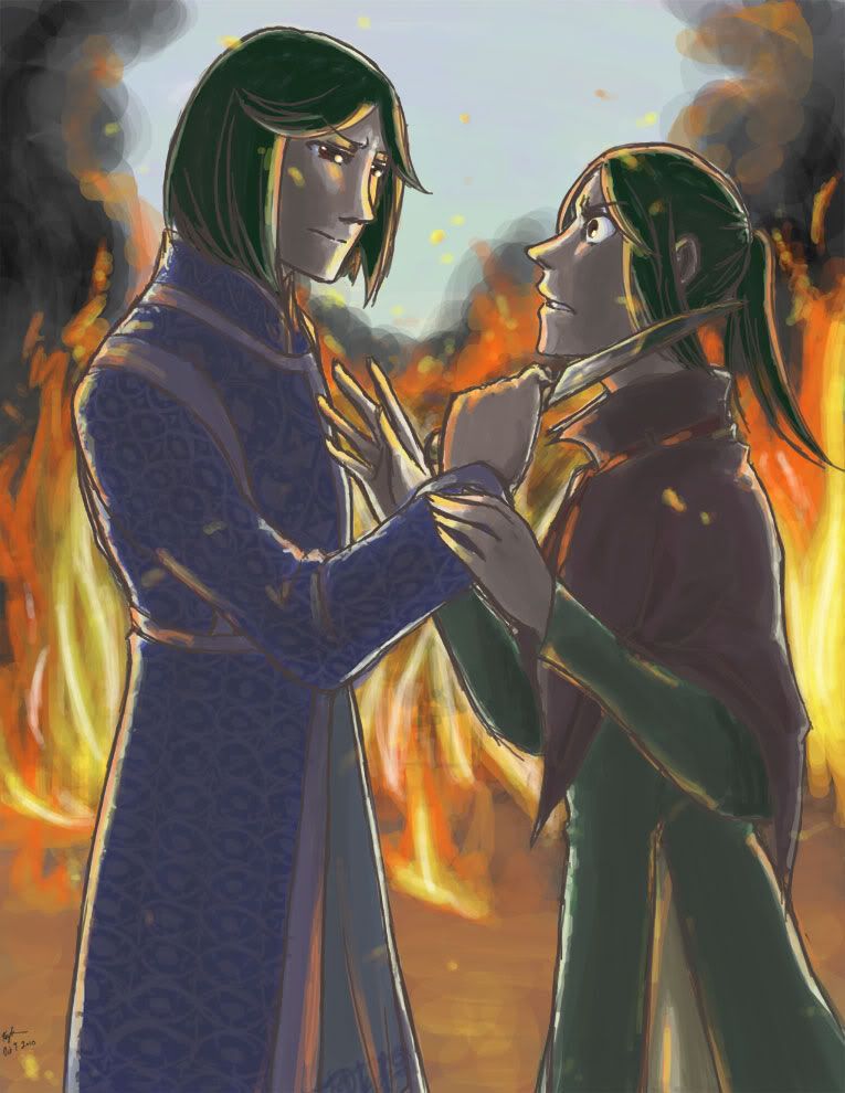 Raine and Syluran! The twerpy twins! With awful embroidery by yours truly! SoG is so melodramatic, and I've finally finished a picture depicting one of those melodramatic scenes. Since SoG is filled with scenes like these, I don't think it's too spoilery to post a couple of said scenes! And these two are amazingly dramatic. I love them. |D